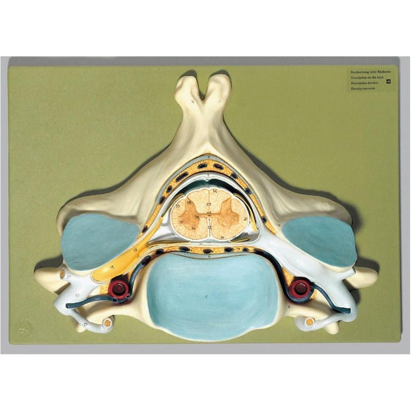 Cervical Vertebra Model enlarged approximatwely 7 times, made in SOMSO-Plast. The Fifth Cervical Vertebra Model, shows the spinal cord in transverse section with spinal nerves and spinal ganglion, artery and vein of the cervical vertebra.