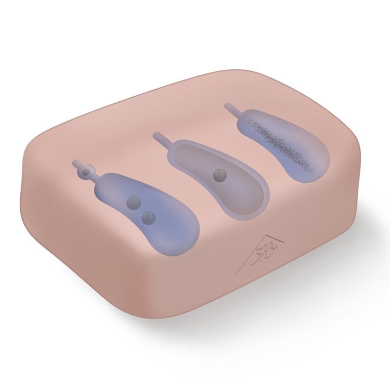 The material of the SONOtrain™ trainer simulates the feel of real soft tissue for carrying out palpations and injections and shows realistic texture and echogenicity on ultrasound images.