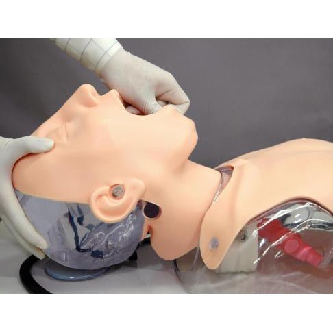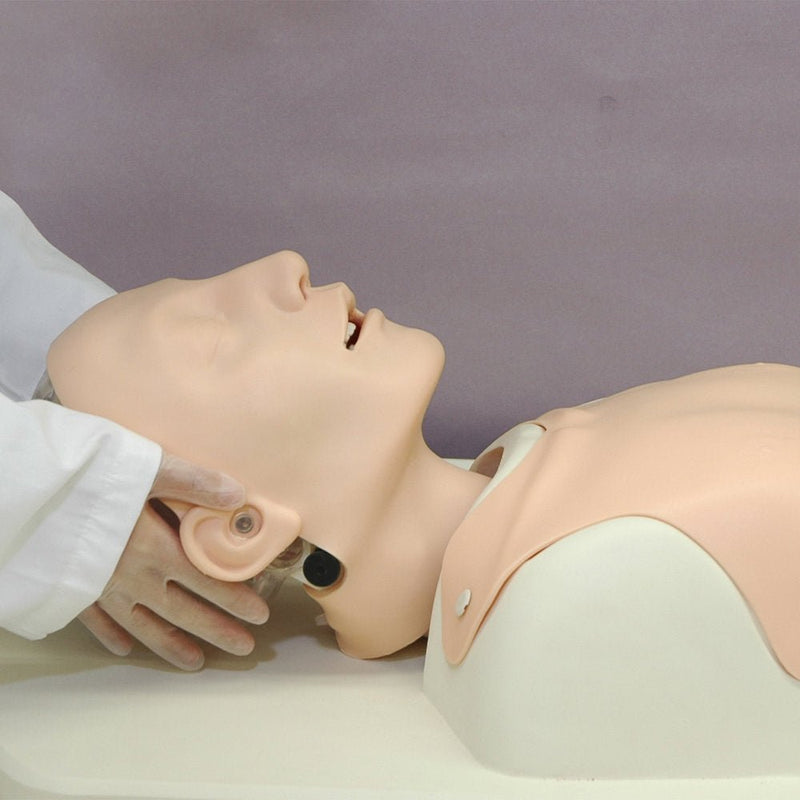 The Difficult Airway Management Simulator offers a realistic airway management training with 24 various difficulty levels including 3 different mouth openings, 2 neck flexibility options, 2 positions for the vocal codes and an inflatable tongue.