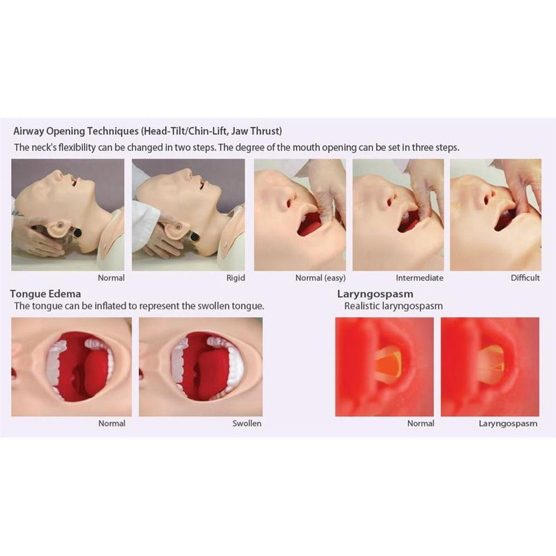 • Feedbacks on incorrect procedures including esophagus intubation and unilateral intubation