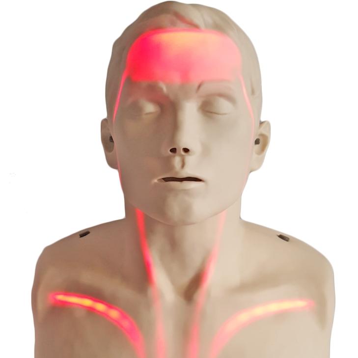 This CPR training manikin is the first ever to display visual flow of blood with indicator lights from the heart to the brain during CPR. Students will not only easily learn how to execute proper and correct CPR in time of need, but will also help to remember the ultimate purpose and vital importance of correct and proper execution of CPR.