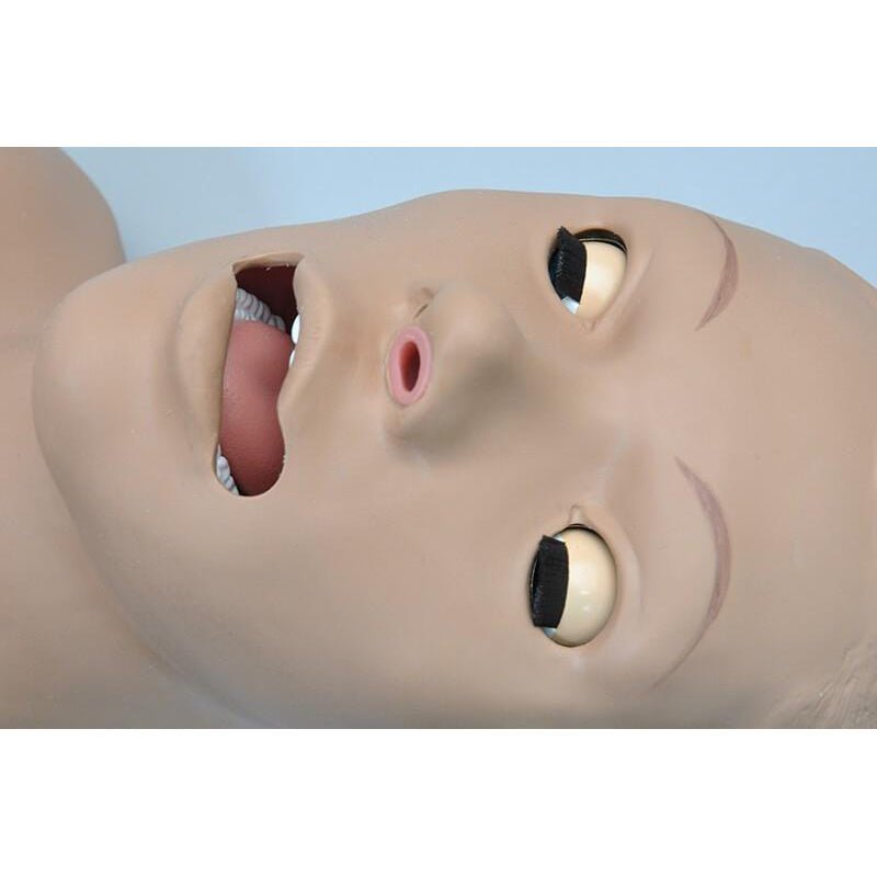 - Fully articulating head, neck, and jaw permitting head/tilt, chin lift, jaw thrust, and neck extension into the “sniffing” position