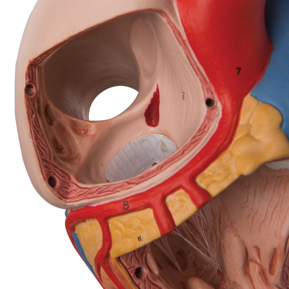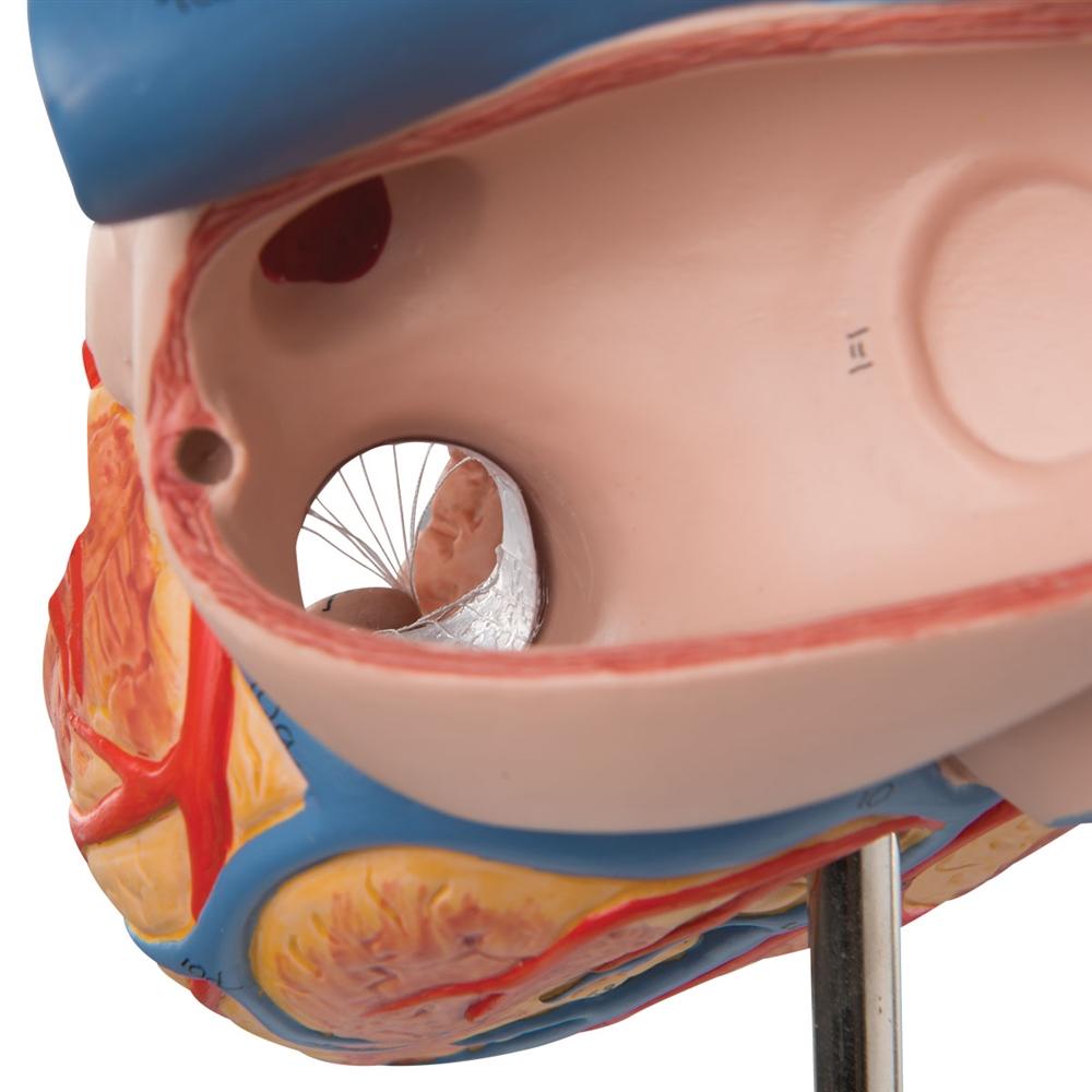 This 2-times life-size heart model allows a very easy identification of all anatomical structures in the human heart and