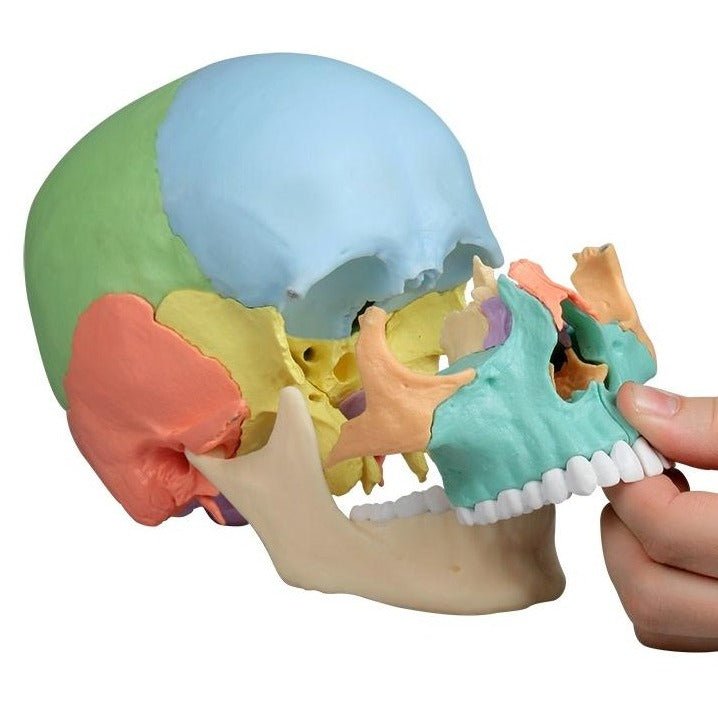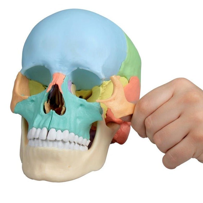 This fascinating model of an average European adult skull can be disassembled into 22 single bones. During development of this model one of the main targets was to make the model easy to assemble and dismantle. Stable parts with convenient magnet connections make handling of the product a child's play.The detailed bones do not need any complicated pins to be stuck into holes, they almost slide into position, guided by realistic bone sutures and held by strong magnets. The perfect tool for Osteopaths.