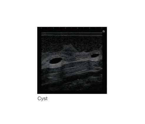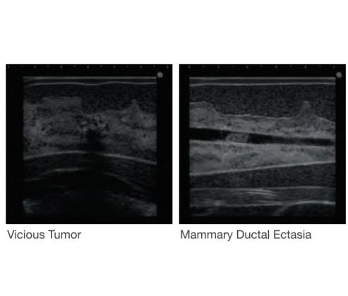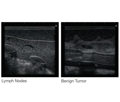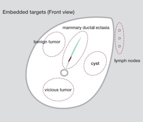 - Sonography for patients: Simulated targets with different echogenicities are embedded in the phantom mammary gland.