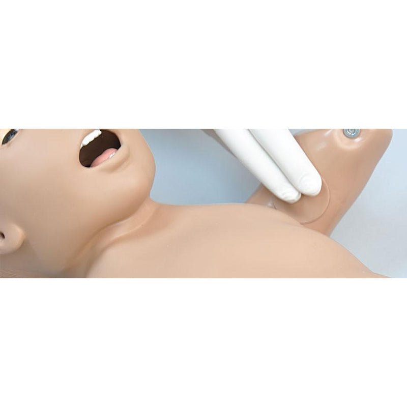 The One-Year-Old CPR Patient Simulator is a full-body 1-year pediatric patient simulator designed to help participants practice and hone basic life support and CPR skills. Fully articulating head and jaw and realistic anatomical landmarks enable participants to work hands-on during chest compression and ventilation exercises.