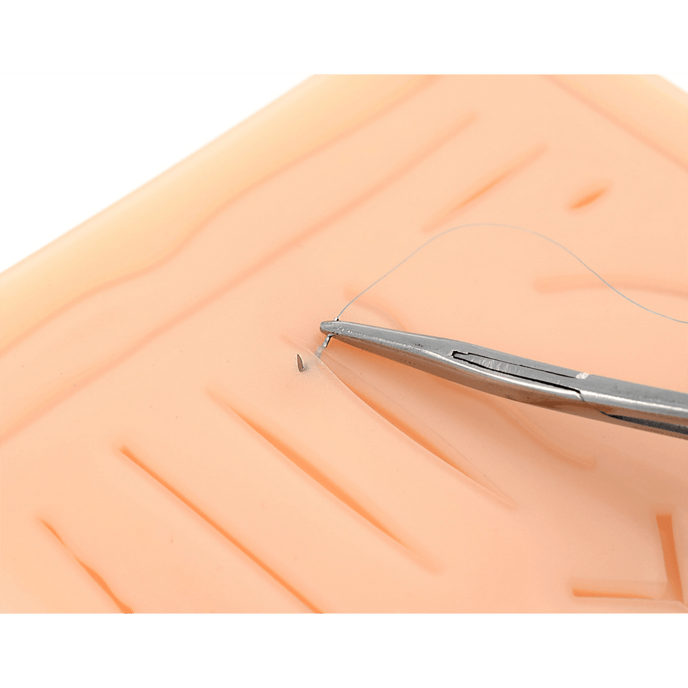 - Innovative plastic pad is durable and does not tear, allowing each cut to be sutured multiple times