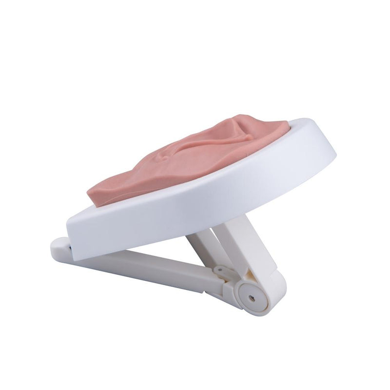 Each cut can be sutured several times; by repeating the procedure, the midwifery and obstetrics students learn about professional wound management. The suture technique can be recorded and assessed by the trainers so that students can improve, after which the students can practice again once the sutures have been removed. The material used for the simulation of the tissue feels realistic, and it is easy to keep clean. The complete trainer does not take up much room when stowed away. The adjustable holder for the simulated tissue stands firmly on the table without slipping. The insert can be taken out of the holder and then worked on while it is lying on the table. This value-for-money tissue insert can be bough in packs of 5 in our shop.