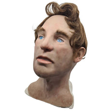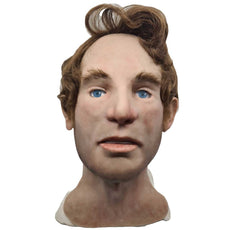 A wig is attached to the facial overlay, making it easy to wrap over the manikin. Eyebrows, and sideburns are
