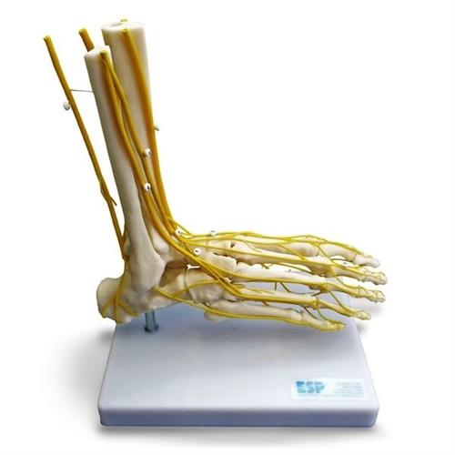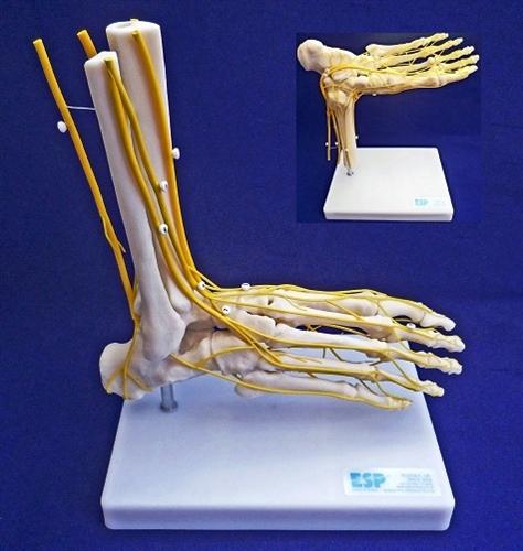 Life-size model of the right foot with all major nerves depicted. The nervous system is shown on both dorsal and plantar surfaces. Foot can be removed and placed on the stand upside down to facilitate viewing of the plantar surface. Neuro Foot Model mounted on a stand wth keycard.One year warranty.