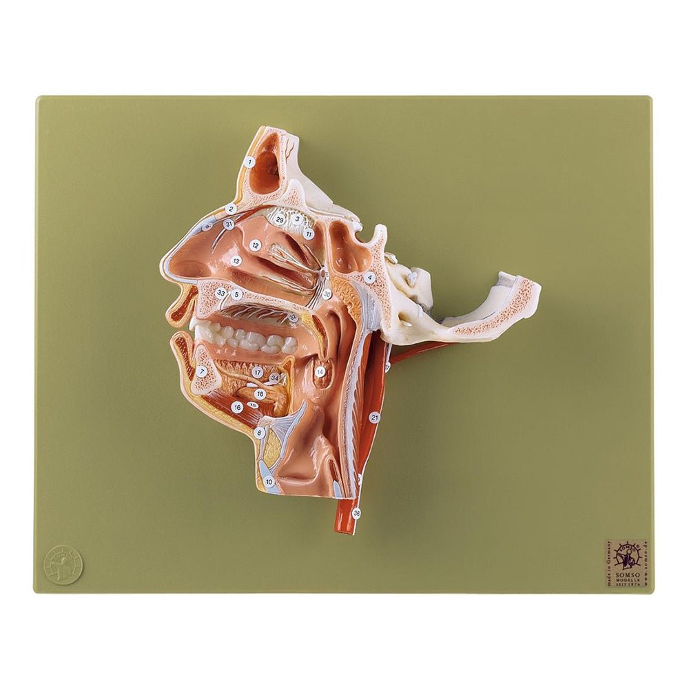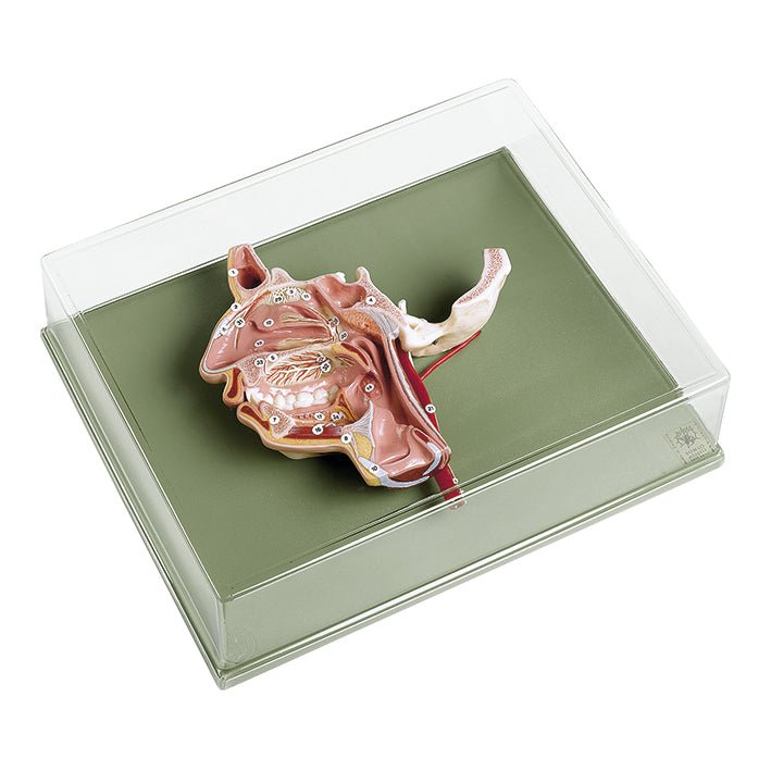 Natural size, in SOMSO-PLAST®.Showing, in right median section, the muscles, nerves, and vessels in particular the cavities of nose and mouth.