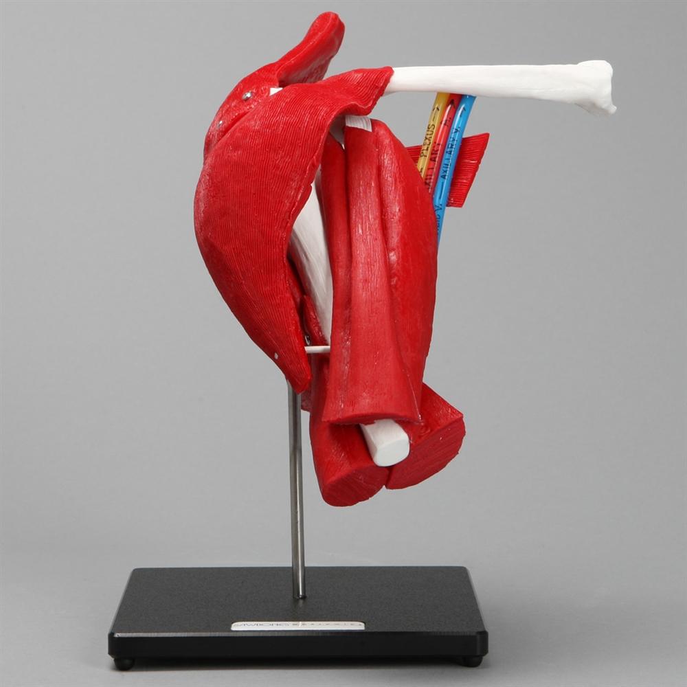 Includes all of the major muscles and larger vessels from shoulder to midshaft humerus. Mounted on removable stand. Storage duffel included. Orientation: Right.