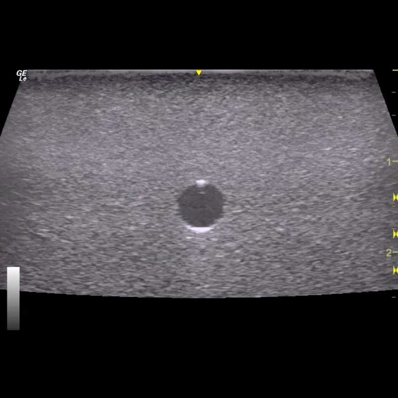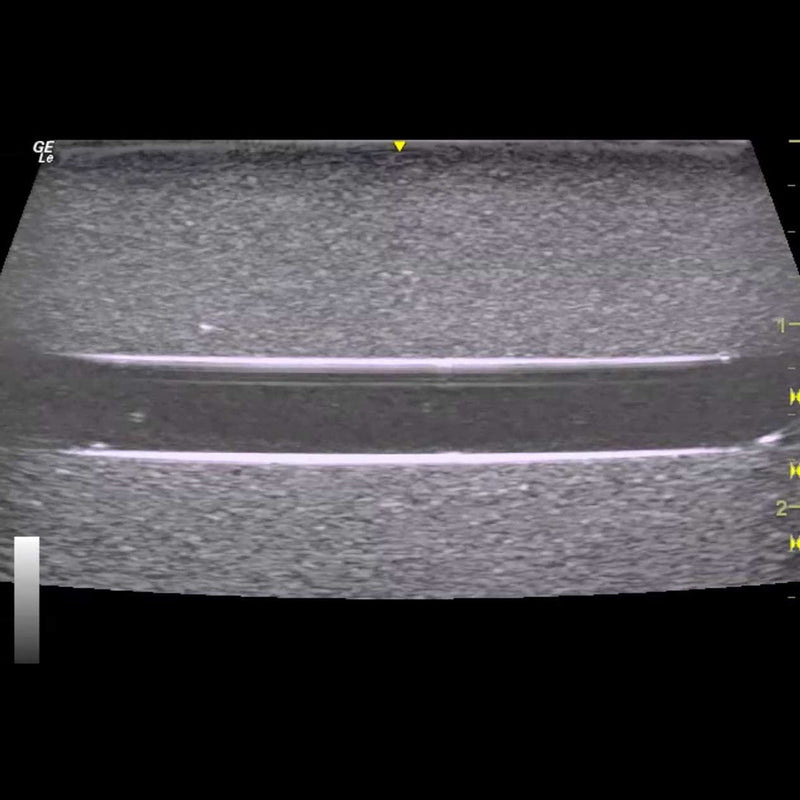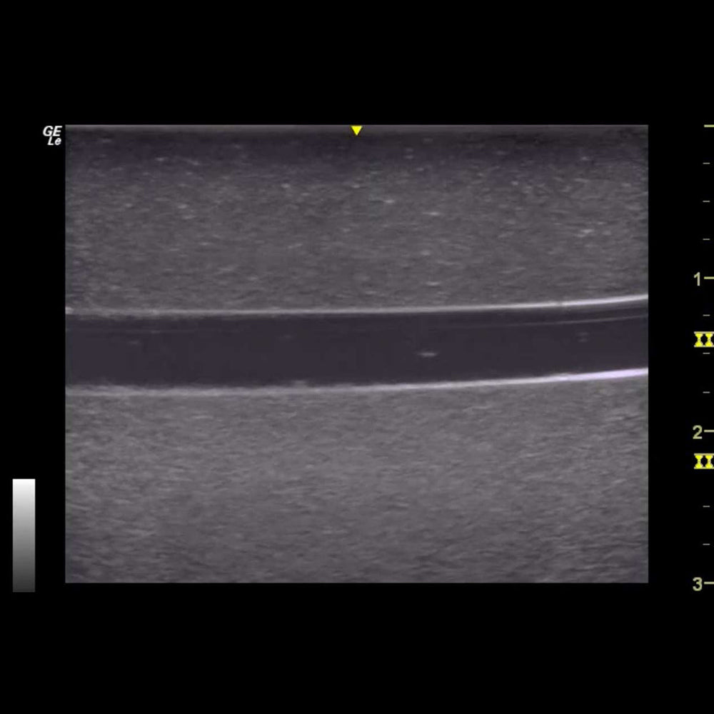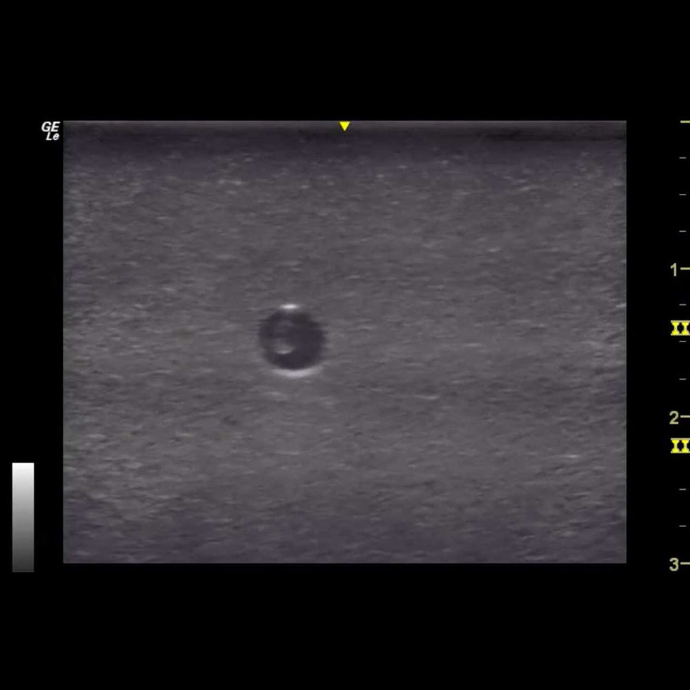 While clear phantoms offer a superior visual appearance to teach important anatomical concepts they do have a darker appearance due to lack of additive simulating human tissue on ultrasound. To use them with ultrasound imaging devices the gain function will need to be increased to 80-90%. Colorized phantoms offer superior ultrasound appearance and are closer matched to human tissue density and may only require a 60-70% adjustment on the gain function.