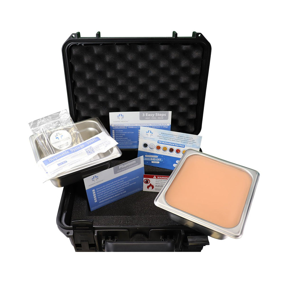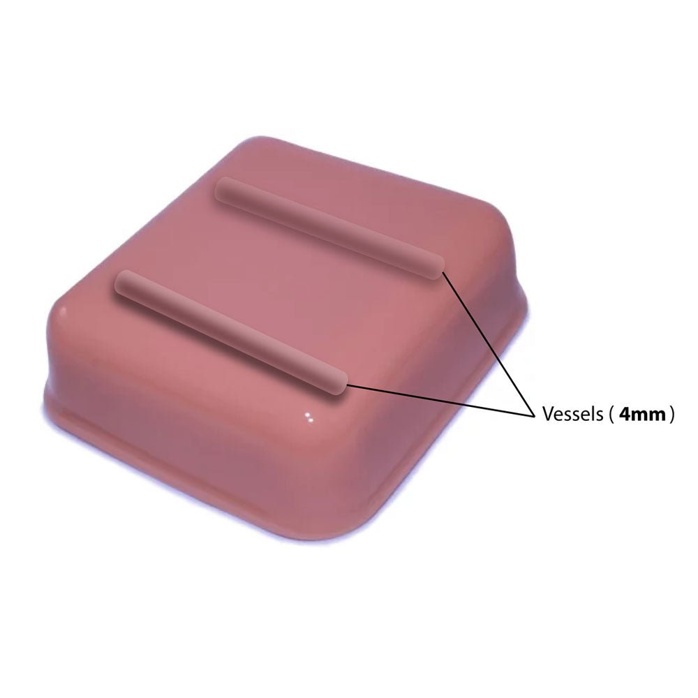 This 2.0 vessel training model has the capacity to bear repeated punctures without suffering a reduction in its performance and usefulness. Simulation is a key component of learner competency and has begun replacing our traditional models see one, do one, teach one on patients in need of experienced operators. Our re-moldable training phantom comprises 2 vessels at different depths to mimic a range of challenges often faced in the clinical environment. This vessel trainer will perform well using any ultrasound imaging system configured with the appropriate transducer (12 MHz)3. The vessels can be accessed from the top and bottom sides and can be simply refilled using a syringe. The Phantom has no special storage requirements and near indefinite shelf life.