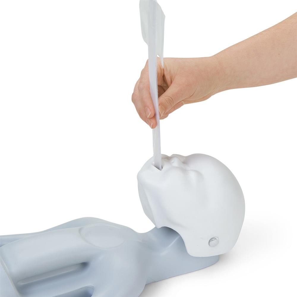 Consists of 1 infant manikin, 10 lung/mouth protection bags, and an instruction manual.
