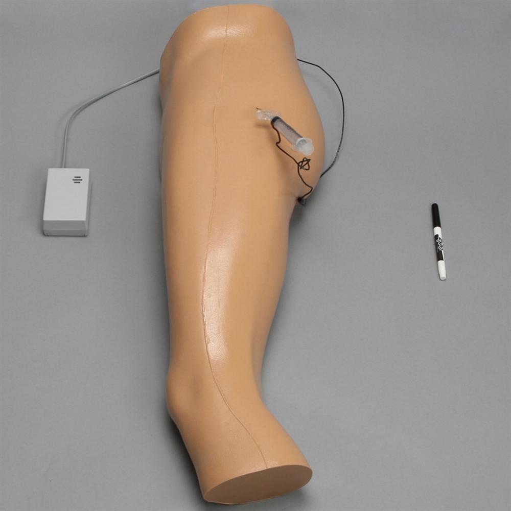 The Hip Injection Model has a conductive system that gives audio feedback when an internal structure is touched with a needle.