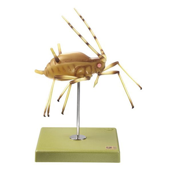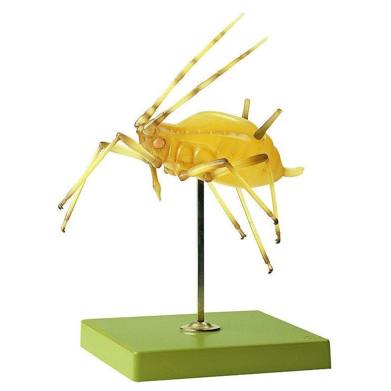 Macrosiphum rosae - Rose aphid designed by Dr. E. Schicha, modelled in SOMSO-Plast®. A wingless rose aphid is modelled to the scale of approx. 1:80. Model in one piece. On a stand with green base. Height: 16 cm., width: 24 cm., depth: 18 cm., weight: 600 gCleaning and disinfecting your SOMSO Model:Spray a rapid and effective water based disinfectant for use on surfaces and wipe with a soft cloth.