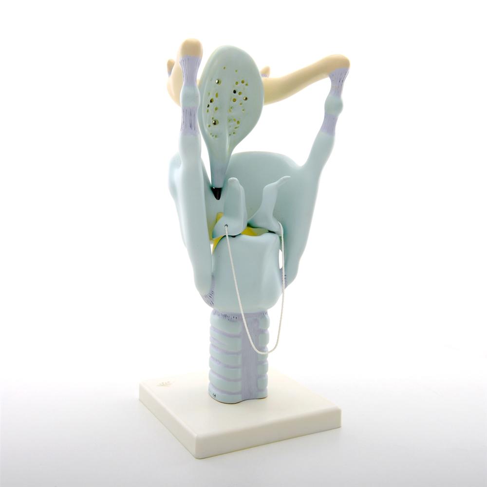 This functional larynx depicts the epiglottis, vocal cords and arytenoid cartilage. These parts are movable in the functional human larynx. The anatomically correct human larynx is a great addition to any doctor's office or classroom. Functional larynx can be rotated on base.