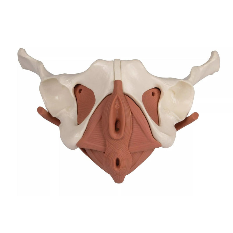 This improved model of a female pelvis with pelvic floor muscles depicts the pelvic floor in its layers.