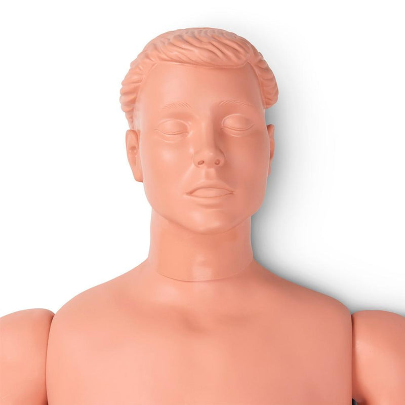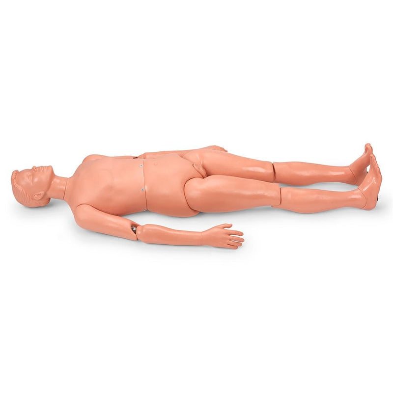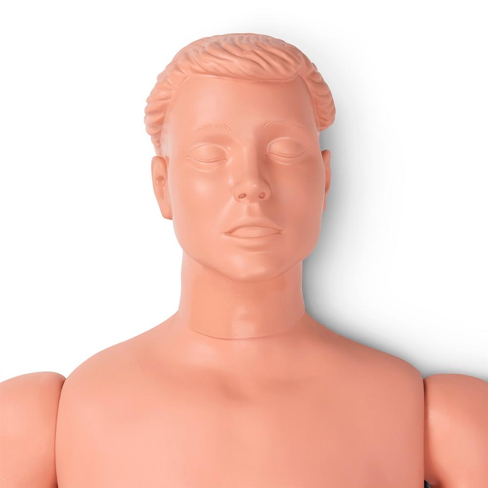 The basic Patient Care Manikin is designed to meet the needs of hospitals, nursing homes, and educational facilities in training primary patient care. Made of durable-cast vinyl over a steel cable frame, the lifesize manikin has fully articulated limbs and torso for flexibility. Offers training opportunities in patient handling and transfer; correct positioning in bed, wheelchair, on bedpan, commode, or other hospital equipment.Patient-sensitive bathing techniques and general hygiene procedures are facilitated by the manikin’s accurate, interchangeable male/female genitalia and smooth, washable surface. A removable wig permits shampooing.