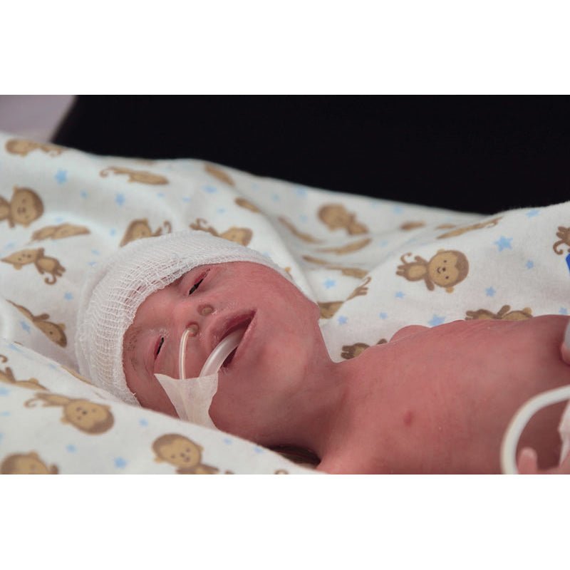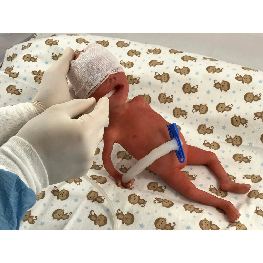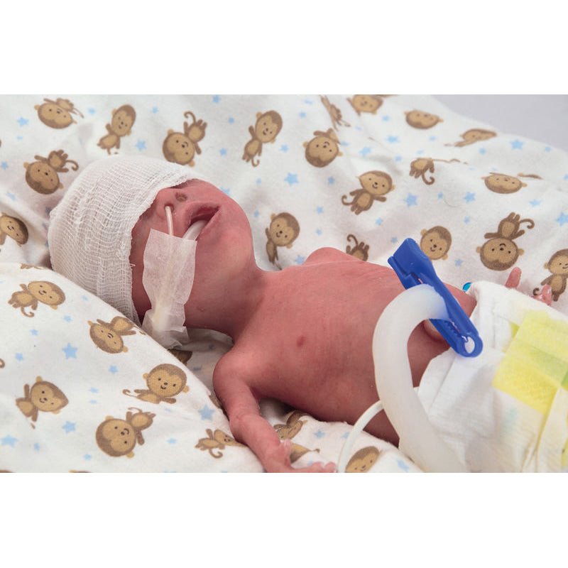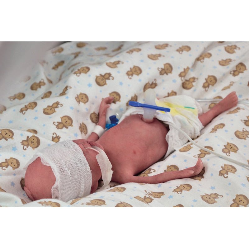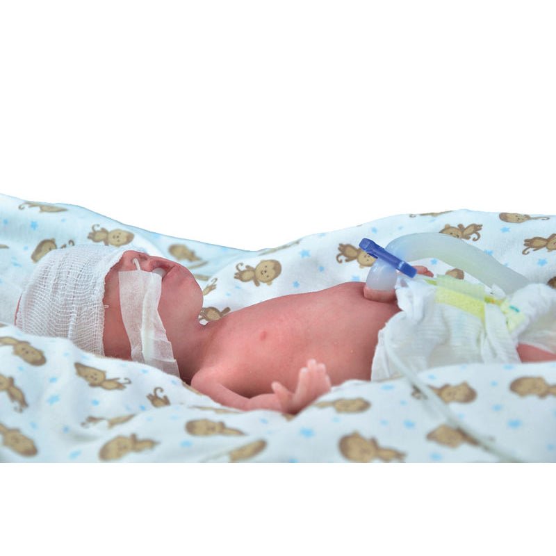 The NENASim Preemie is a realistic interactive simulator, to be used for neonatal intensive care training. The Preemie allows for a variety of medical procedures, preparing medical staff and everyone involved in the enormous responsibility of caring for a preterm baby. The main assets of the Preemie are its realistic airway, lifelike feel and looks, and task-training functionalities. NENASim Preemie represents a female baby with 12.99 inches and 1.61 lbs. NENASim Preemie is available in two degrees of fidelity.