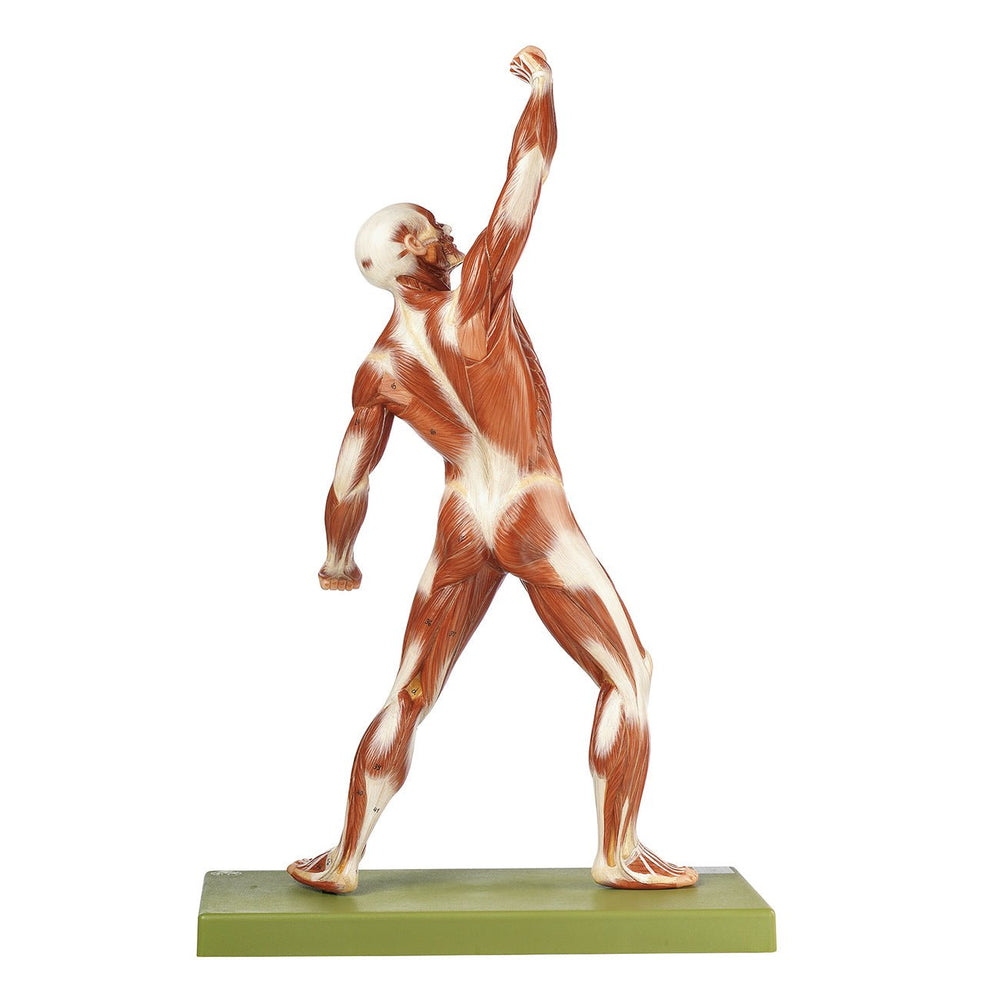 about 1/4 natural size, made in SOMSO-Plast®. The model shows the topography of muscles and is not detachable. Removable from a green base. Height : 53 cm. (figure 50 cm.), width 33 cm., depth: 15 cm., weight: 1.5 kgCleaning and disinfecting your SOMSO Model:
