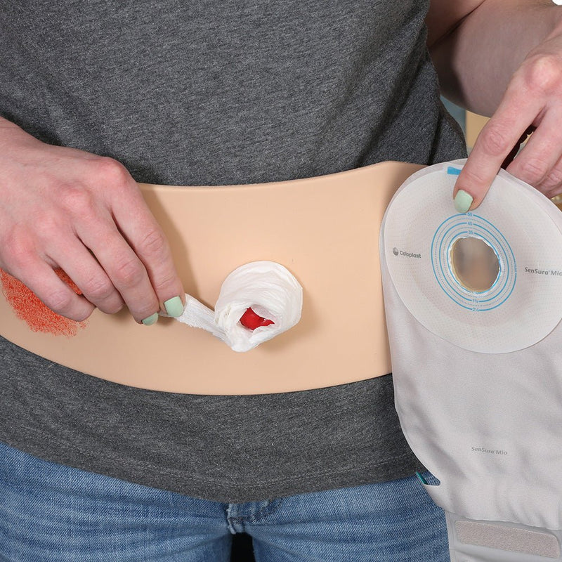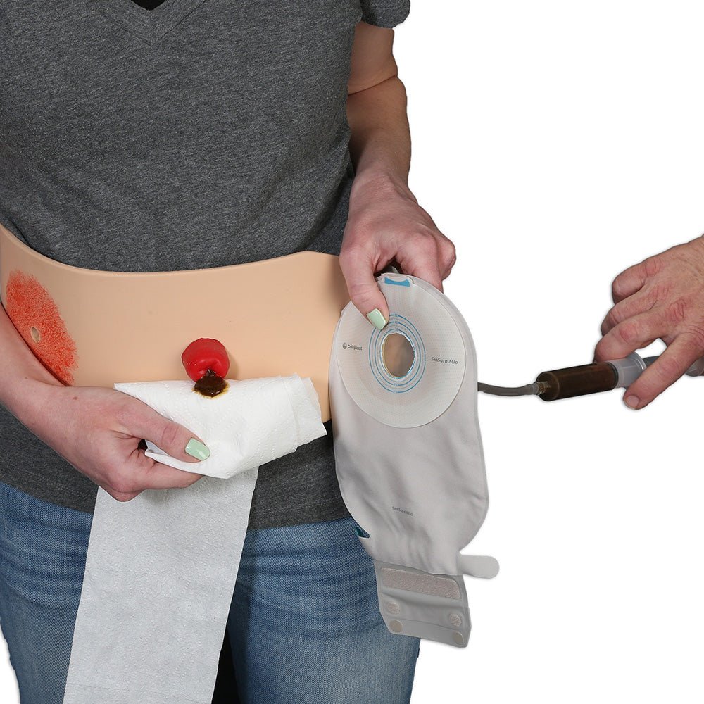 With the Ostomy Pouching Trainer™, each of these stomas can have simulated stool or urine output and can be placed in four different locations: