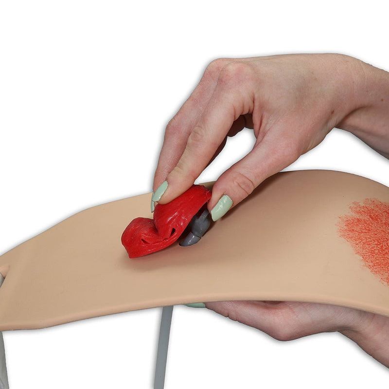 The most realistic and complete pouching skills trainer offered anywhere, the Ostomy Pouching Trainer includes the following features: