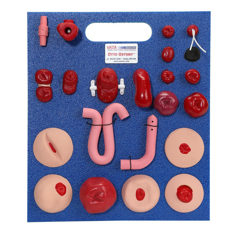 The more healthcare providers understand ostomies, the better they will be able to educate and encourage their patients about this life-changing event. Proper teaching helps increase patients’ understanding of their condition and the adjustments which may be necessary for achieving a satisfactory standard of life with their new stoma. Otto Ostomy Advanced Model the ultimate educational tool for nurses and patients. Pre-operative teaching allows patients and their families to begin learning about ostomies prior to surgery, at a time when they are less distracted—reducing anxiety.Seeing the 3D digestive and urinary tracts and visualizing the location and function of the various organs is essential to learning, especially in those cases where cognitive processes or language may be an obstacle. Modeled from an actual patient’s CT scan, Otto Ostomy™ will help your patients and their families become more knowledgeable about what to expect, while demonstrating how ileostomies, colostomies, urostomies and gastrostomy tubes function. Otto Ostomy™ has a clear torso shell with four openings for the insertion of stomas. The torso shell is easily removed from the aluminum base for teaching or to facilitate in accessing and manipulating the organs. The color coded organs displayed include: Stomach, Small Intestine, Large Intestine, Rectum, Kidneys, Ureters and Bladder.