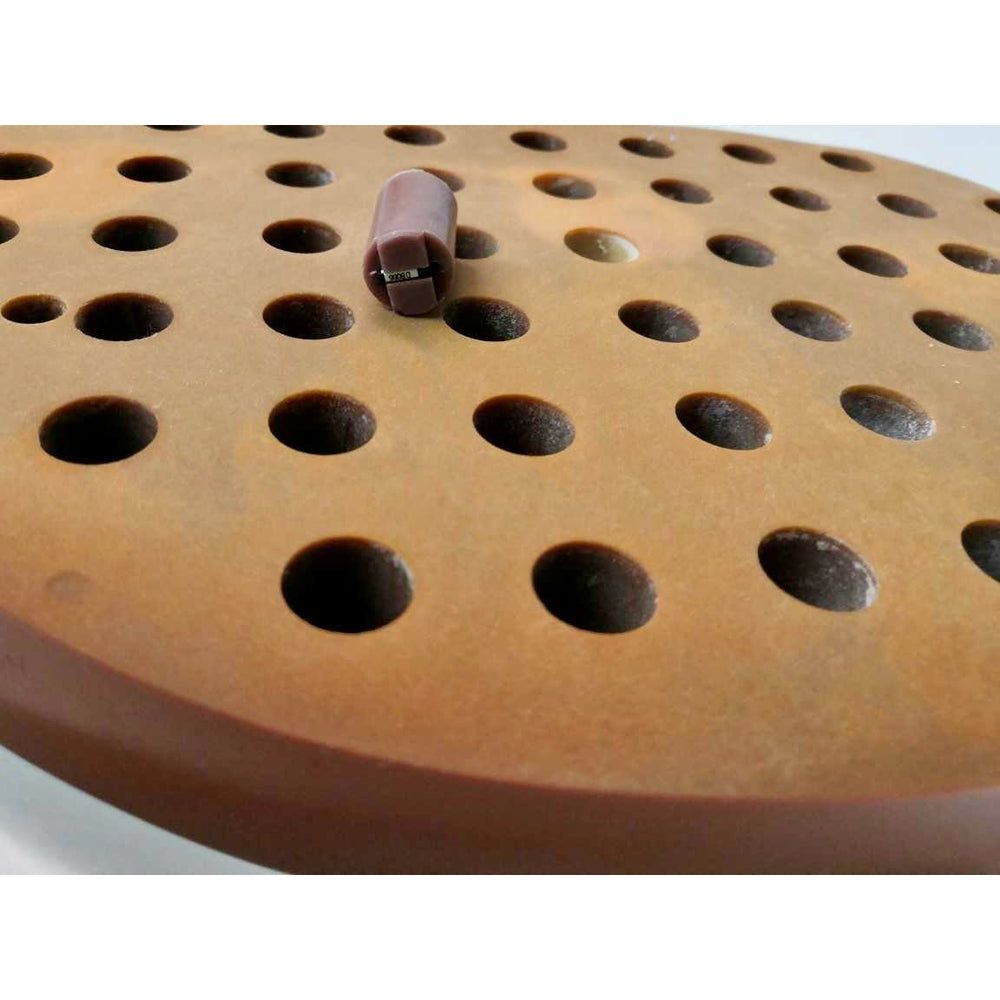 The ART Phantom is transected-horizontally into 2.5 cm thick slices. Each slice has holes which are plugged with bone-equivalent, soft-tissue-equivalent or lung tissue equivalent pins which can be replaced by TLD holder pins. Holder pins may be ordered separately.