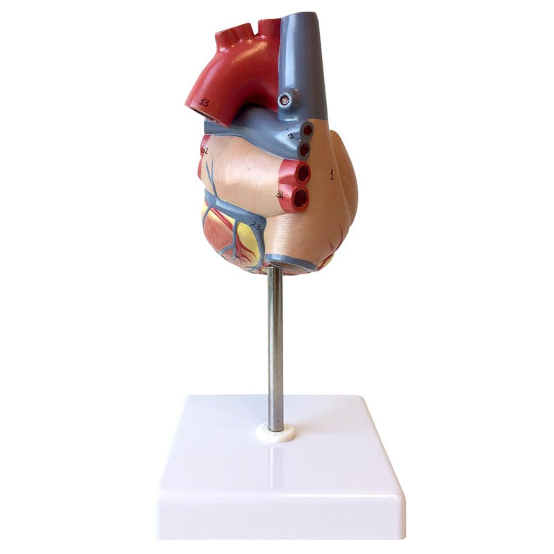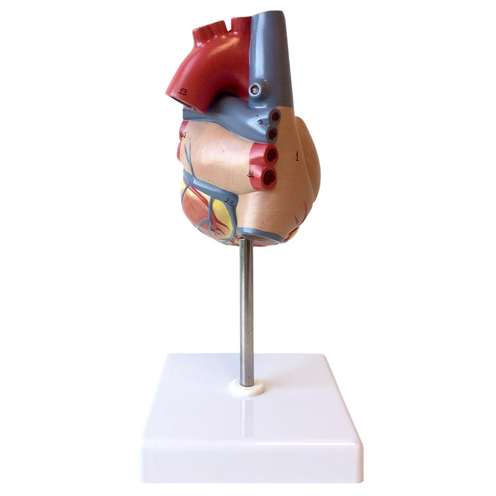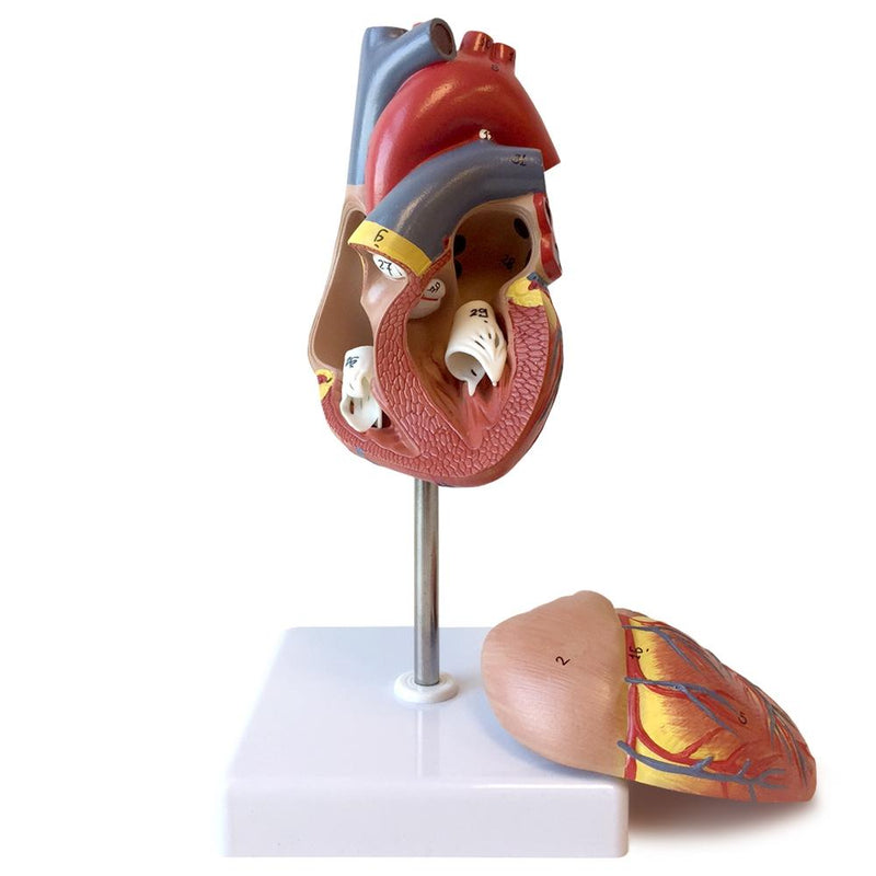 Life size in 2 parts. The anterior heart wall can be removed to show the left and right ventricles and atria as well as the tricuspid, pulmonary, mitral and aortic valves. Heart can be removed from stand.Human Heart Model Dimensions: