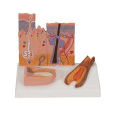 Skin Normal/Acne - Item Details: Enlarged 2-sided skin cross-section. The Acne Side displays 3 conditions: Whitehead Blackhead Pustule/Cyst The reverse side illustrates normal skin anatomy.