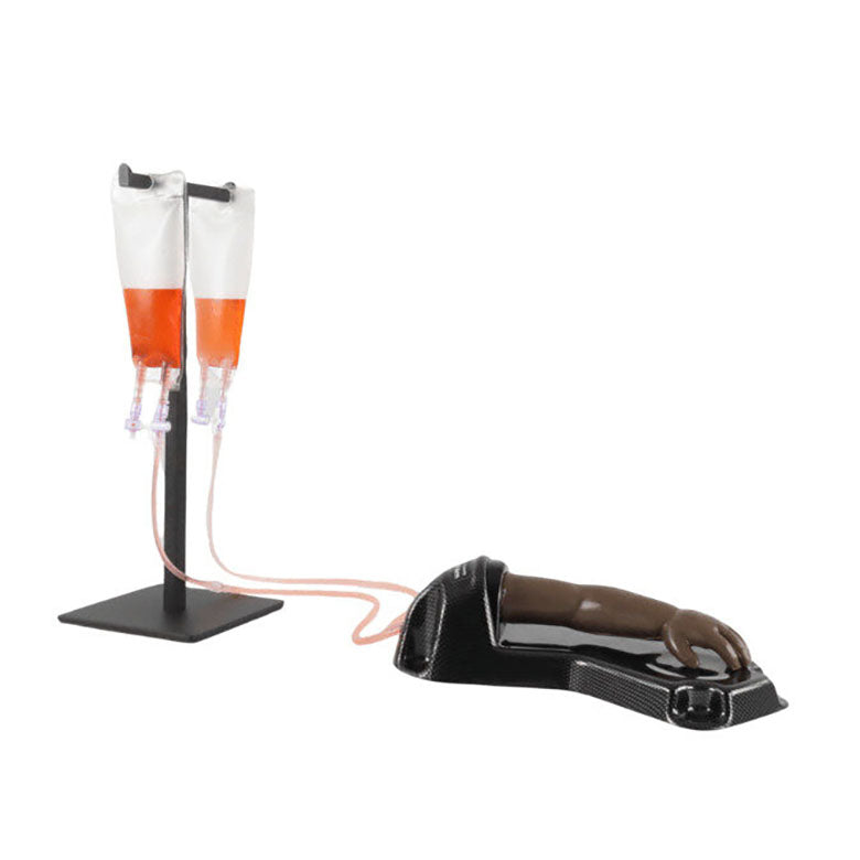 The TruInfant IV Arm & Consumable Bundle is a realistic task trainer for practicing the skills associated with peripheral IV cannulation of the hand and arm. This model is based on a 5-month-old infant. The newly designed material allows for more realistic and lifelike IV cannulation training. Featuring realistic anatomy including the dorsal venous arch, cephalic and basilic veins allowing needle cannulation at various locations. Each bundle contains one fully assembled unit and two replacement arms.