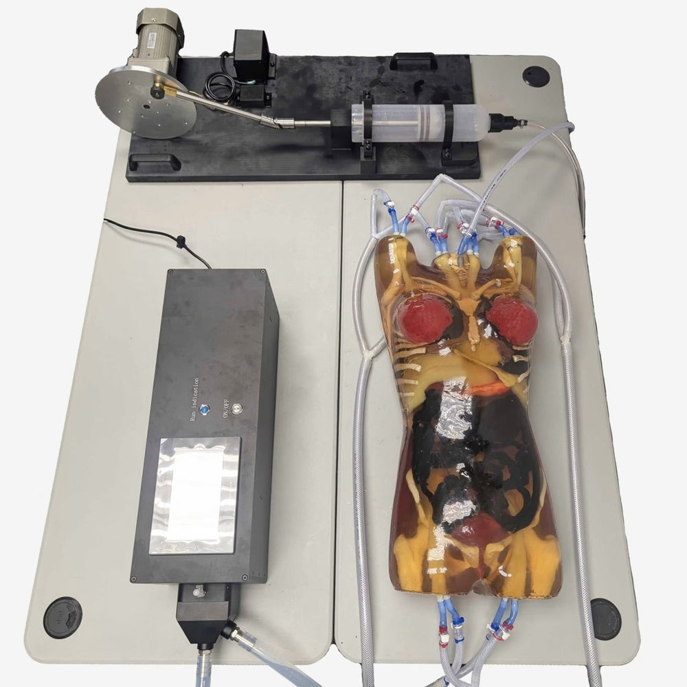 The Adult Female Torso can also be made dynamic with our heart and lung pumps to simulate respiratory motion.