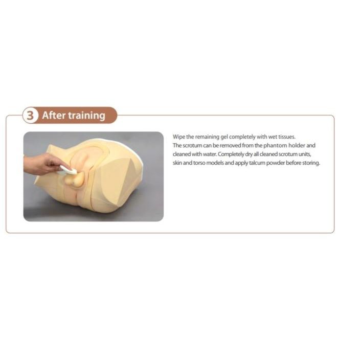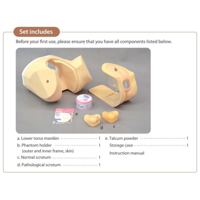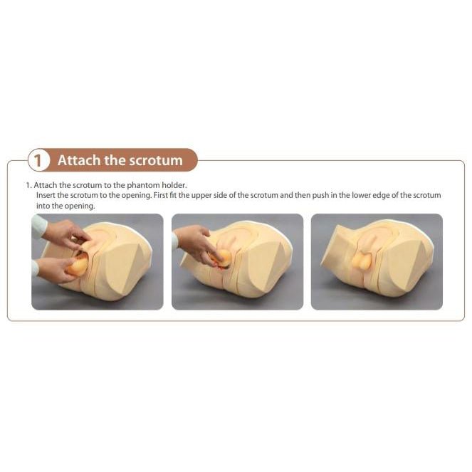 Repeated training to acquire skills in safe and painless examThe NEW Kyoto Kagaku Ultrasound Scrotal Phantom provides users the best training method for teaching and learning how to practice ultrasound scanning of the scrota using an ultrasound system. This phantom is made from human tissue equivalent material in ultrasound speed, and it is anatomically correct with basic pathology.