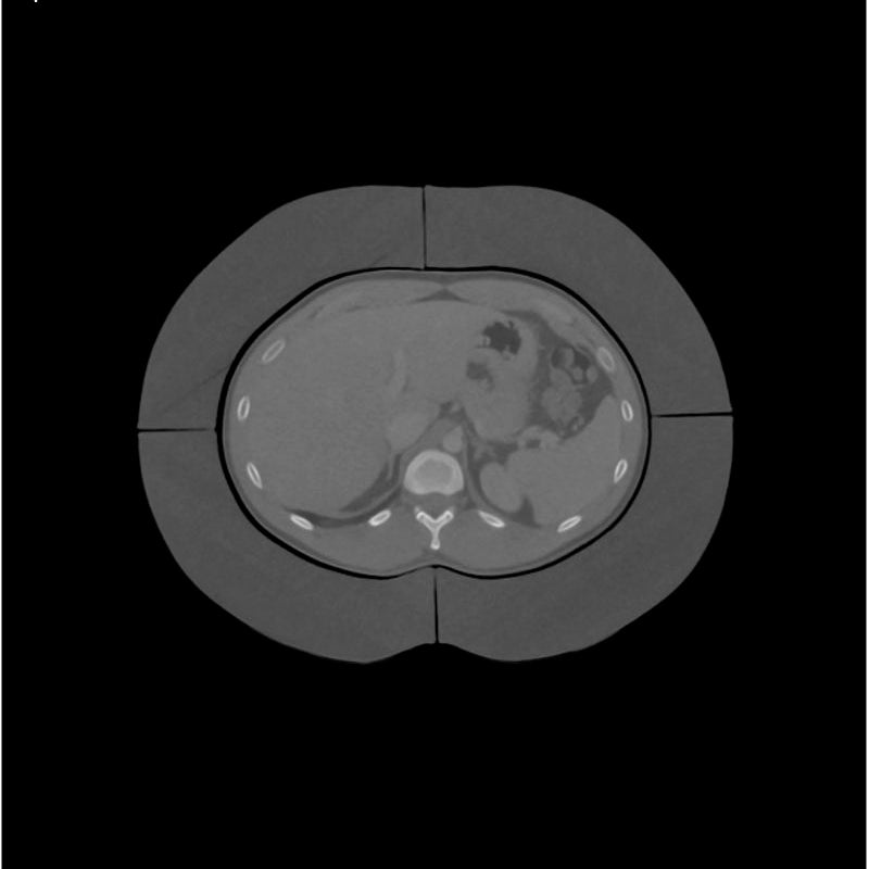 This 5 cm thick fat ring is made of adipose tissue equivalent material and can be mounted around abdomen phantoms PX-53-02, PX-53-03 or PX-53-08 for scanning.