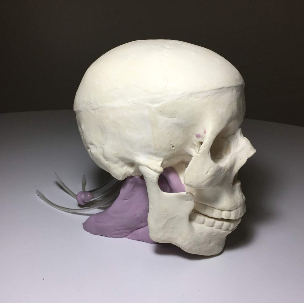 without skin-mimicking tissue, this model features a realistic three-layered structure with an inner diploe layer,
