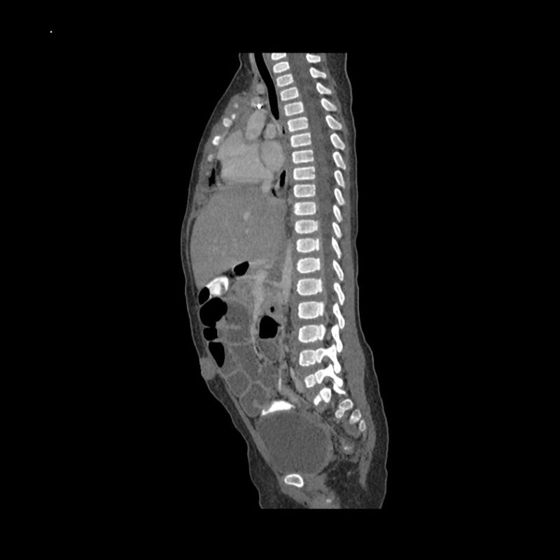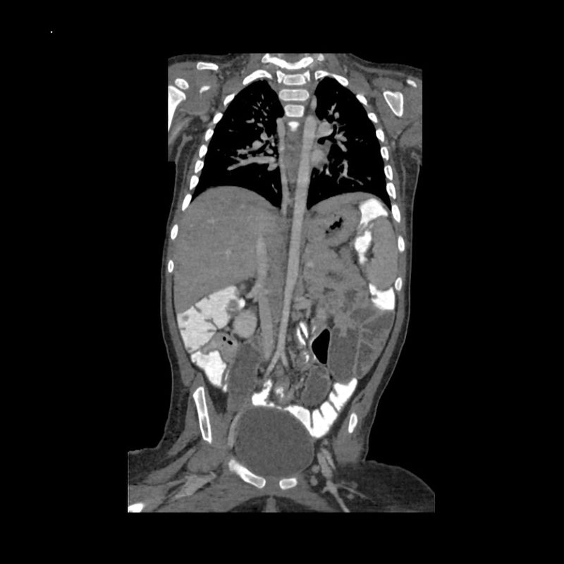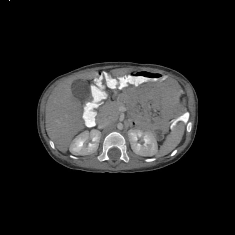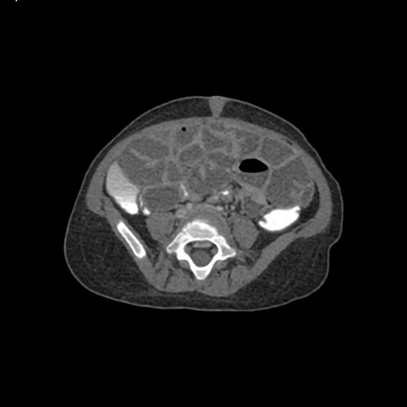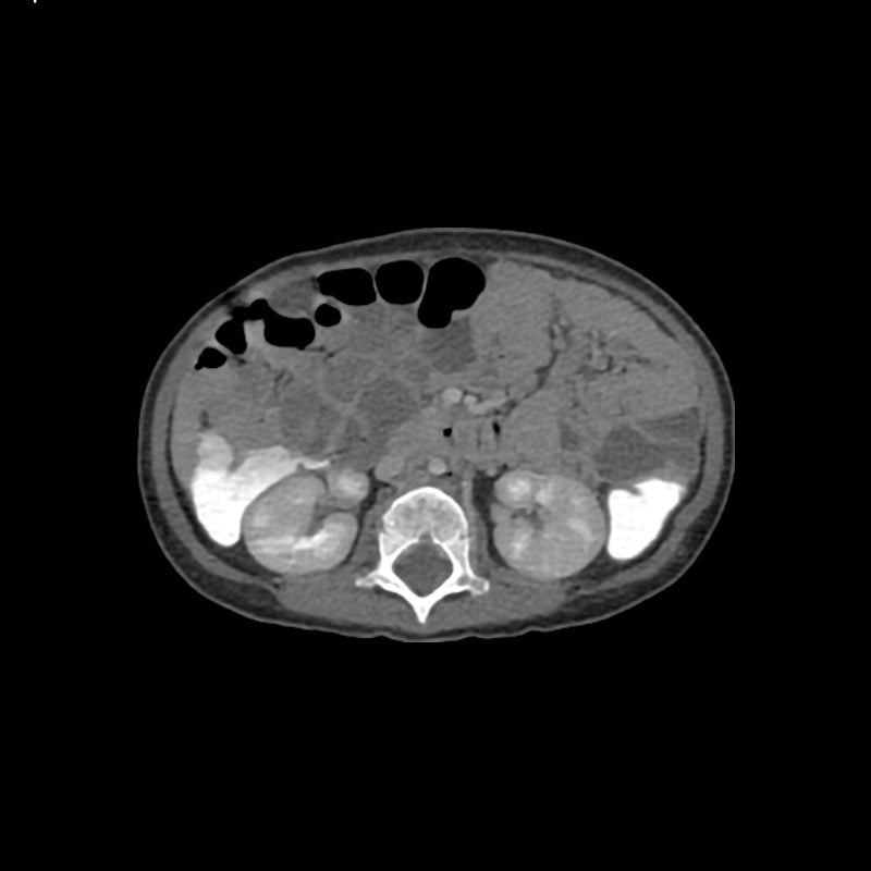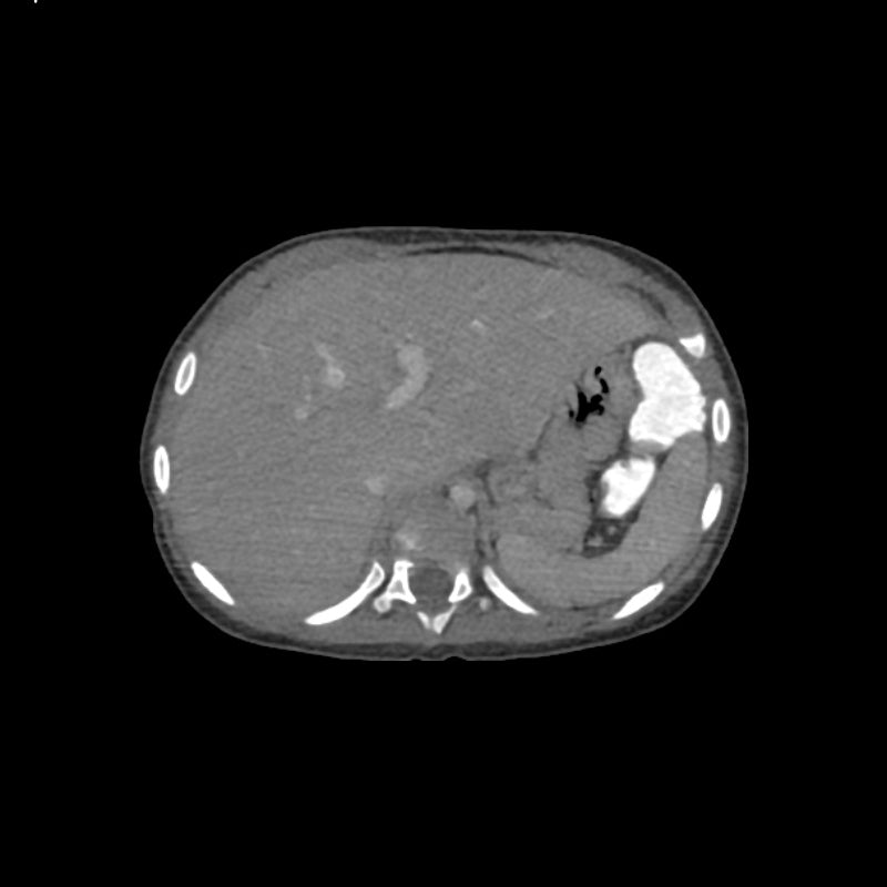 This phantom simulates a 1-year-old child's contrast medium enhanced thorax, abdomen and pelvis in portal venous phase. It covers the sixth cervical vertebra to the perineum. The colon is filled with contrast medium as after rectal administration.