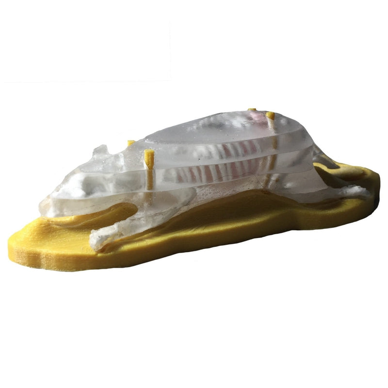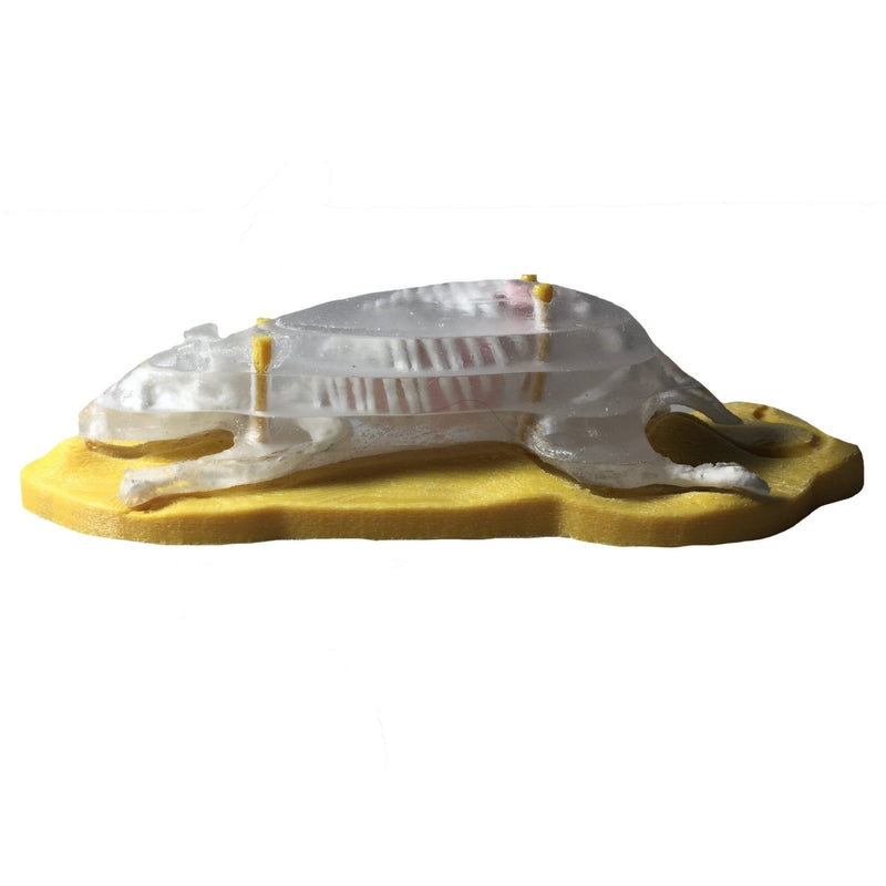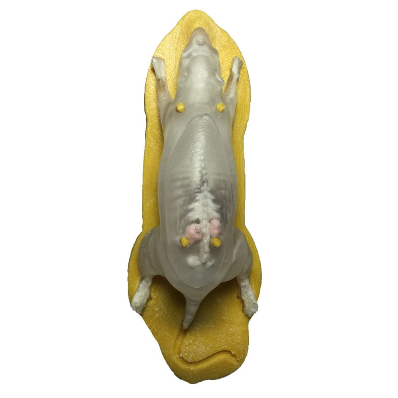 Sectional Mouse Phantom for X-Ray/CT is designed based on the average anatomy of a mouse, and it is sliced into four 5 mm thick segments. The phantom can be used for medical imaging research & development, testing, and calibration-related work. It can be customized in terms of size, shape, internal features, and properties to fit the needs of a wide variety of biomedical research projects.