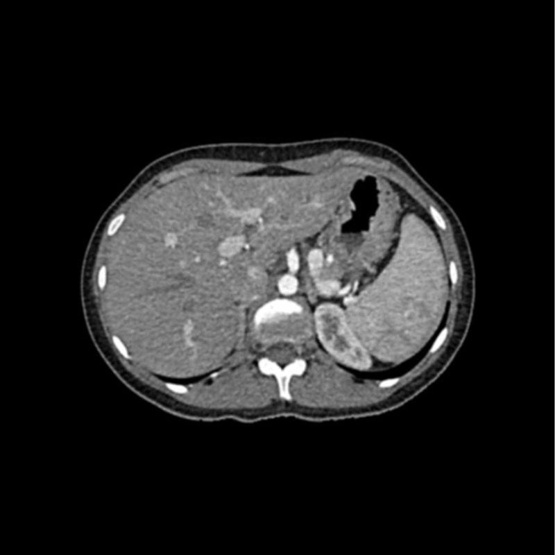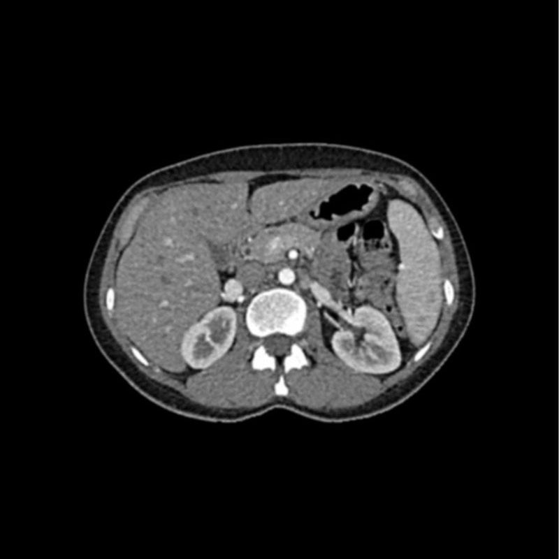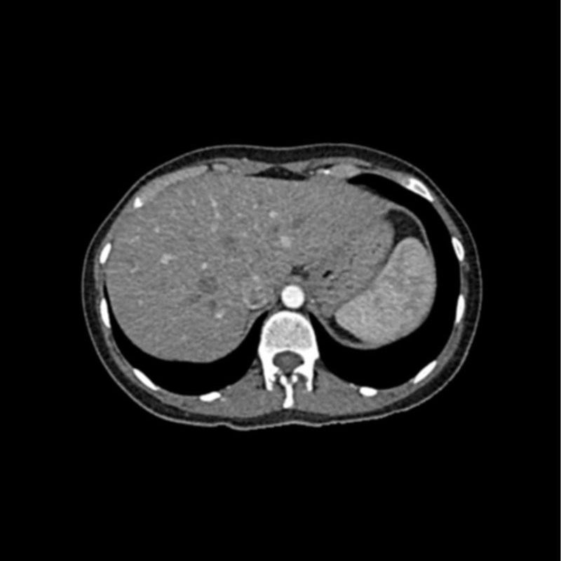 This phantom simulates a contrast medium enhanced abdomen in arterial phase. It covers the eleventh thoracic vertebra to the fourth lumbar vertebra (partially included).