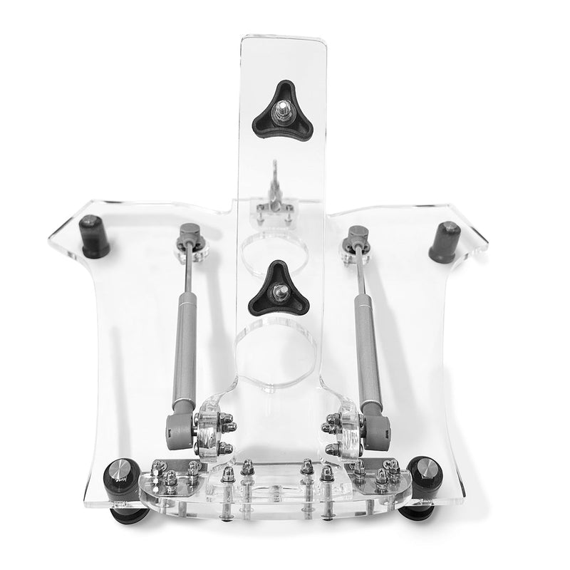 Optional base made of acrylic to hold the surgical unit firmly during exams and surgeries. Its design features a shock absorber system that allows the movement of the surgical unit and allows the vision in an elevated position.