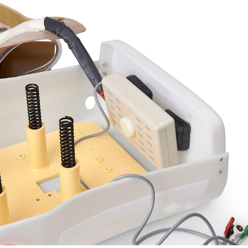 An internal load box absorbs the full strength of every shock to protect students and equipment. The skin also makes it possible to monitor the manikin from 4 ECG sites, just like a real patient. Can do manual, AED, and quick look defibrillation.