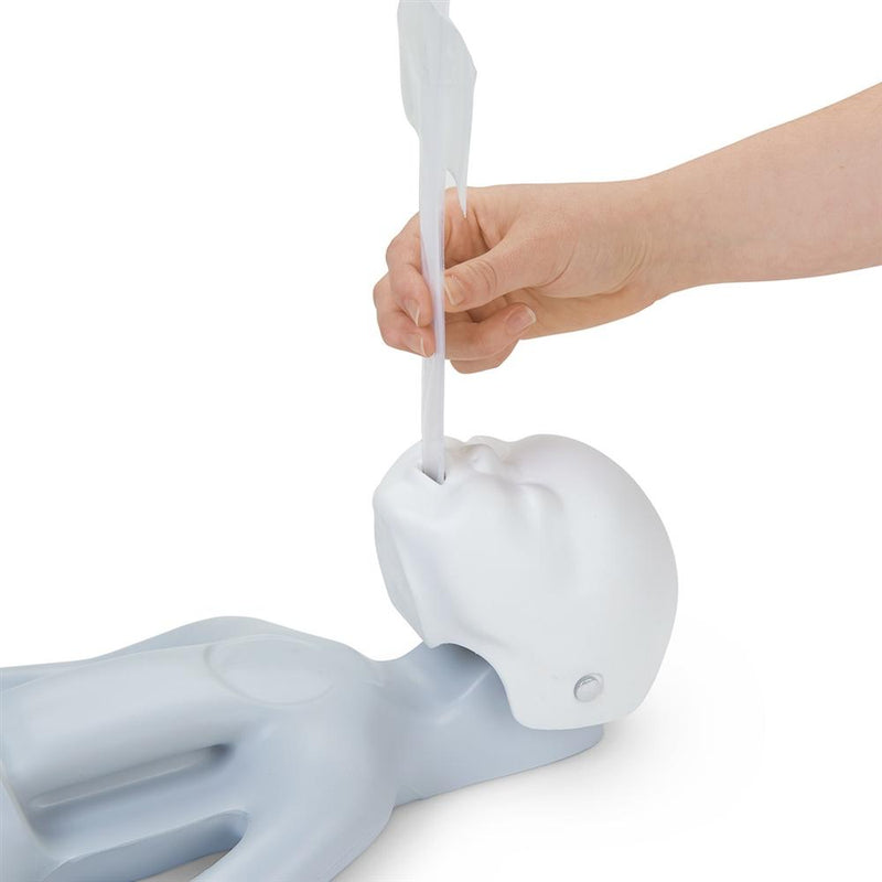 Consists of 1 infant manikin, 10 lung/mouth protection bags, and an instruction manual.