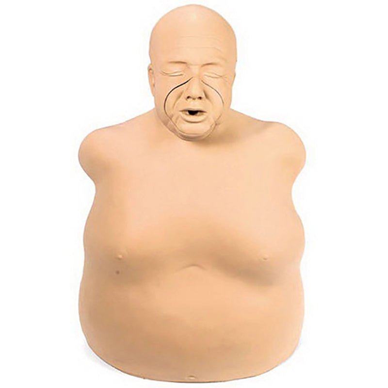 Students always wonder how CPR manikins will compare with real victims, especially those who are older or obese.This unique CPR manikin, light skin, helps to prepare students to respond to a more typical cardiac arrest event with a victim who is elderly and overweight.