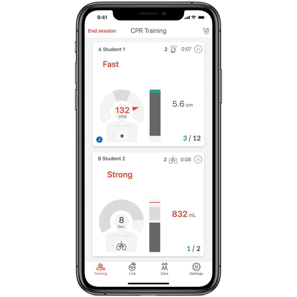 The Instructor App provides a detailed performance review of up to six manikins at a time while the Student App enables trainees to directly see and monitor their CPR performance in real-time.
