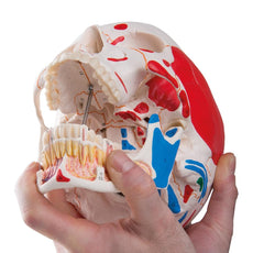 The human skull consists of many individual bones that gradually grow together as the development proceeds. The best selling 3B Scientific® Beauchene Adult Human Skull is a natural cast and makes the complex anatomical structure of the human skull easy to understand. The Beauchene Skull can be disassembled into its 22 individual bones. The individual bones can be reassembled by means of inconspicuous, stable connectors attached at the slightly simplified skull sutures. All 22 bones are depicted in their natural bone color in this "Exploded Human Skull".