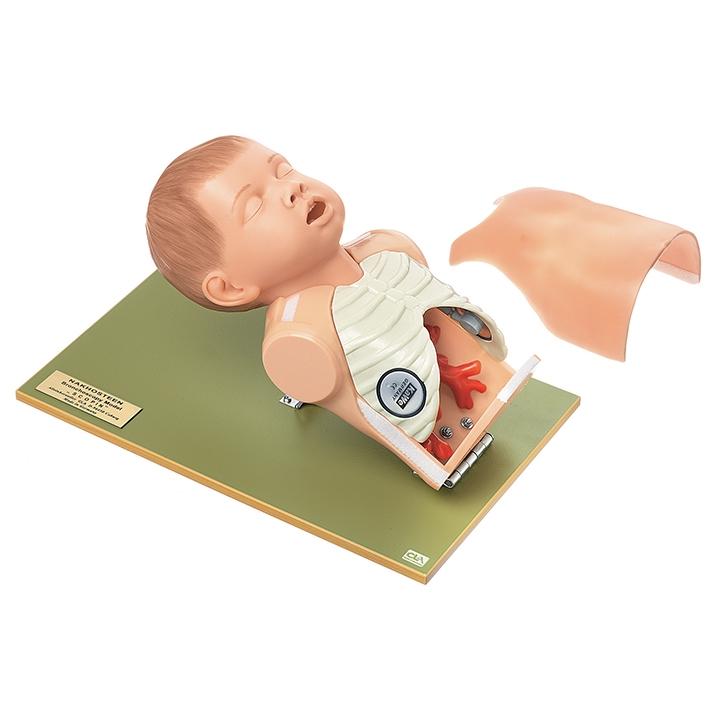 Broncho-Boy Junior Anesthesiology Trainer CLA9-23A multi-funtional intubation mannequin for pediatric bronchoscopy, produced in co-operation with Prof. Dr. John A. Nakhosteen. It correspond to an approx. 4- to 5-year-old child. Its major characteristics are right-left head movement and retro-anteflextion, acoustic membranes for auscultation, nasal passages suitable for a 4.5 mm nasotracheal tube, and an integrated tracheo-bronchial system which can accommodate a 5 mm rigid bronchoscope.