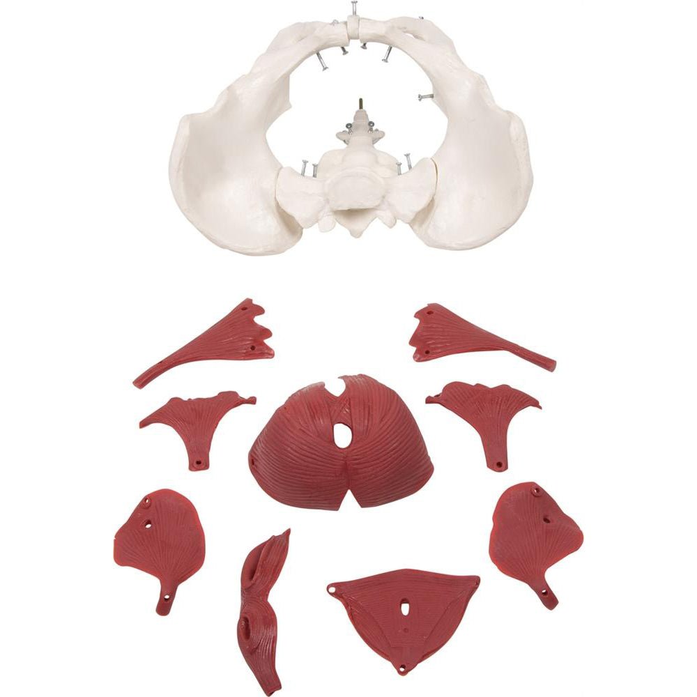 This improved model of a female pelvis with pelvic floor muscles depicts the pelvic floor in its layers.
