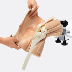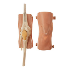 In addition to the healthy knee this model shows a diseased knee as well as a knee with knee implant.
