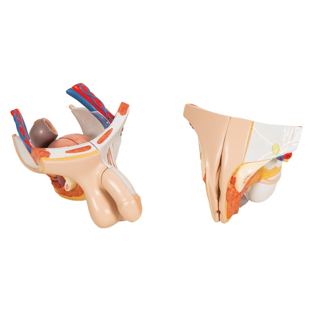 This life-size, high-quality muscular figure represents a wide variety of human anatomical structures in most accurate detail. The muscular figure is therefore especially suitable for the high demands of medical school. The right half of the muscle model shows the skin, the left half the superficial and more profound muscles with nerves, vessels and bony structures. The versatility of this muscle figure, which is also aesthetically designed, is rounded off by the accurate representation of the internal organs.